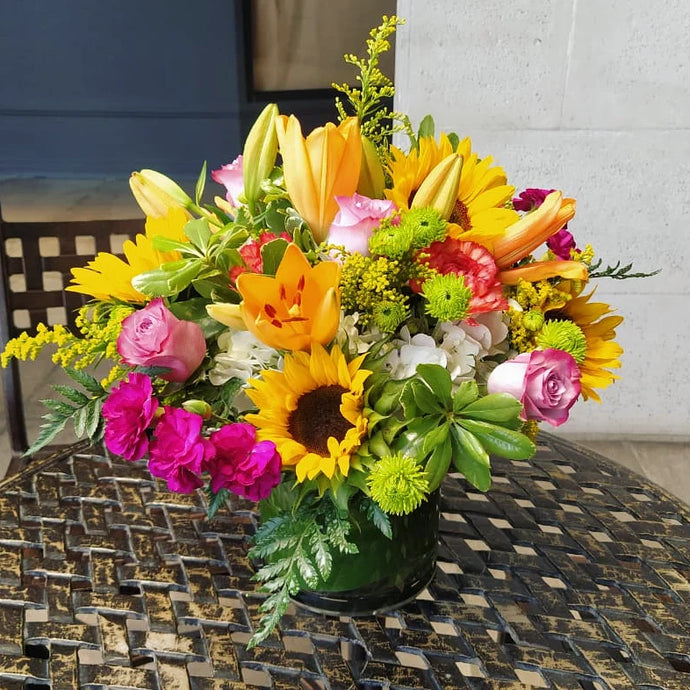 Caja Floral con Sangría, Rosas Rojas y Finos Dulces